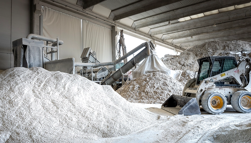 Il recupero del cartongesso avviene grazie a un sistema brevettato che separa completamente la cellulosa e il gesso, generando nuovi materiali riutilizzabili. Dalla sostenibilità nasce anche Sorbène, l’assorbente ecologico per idrocarburi prodotto internamente.